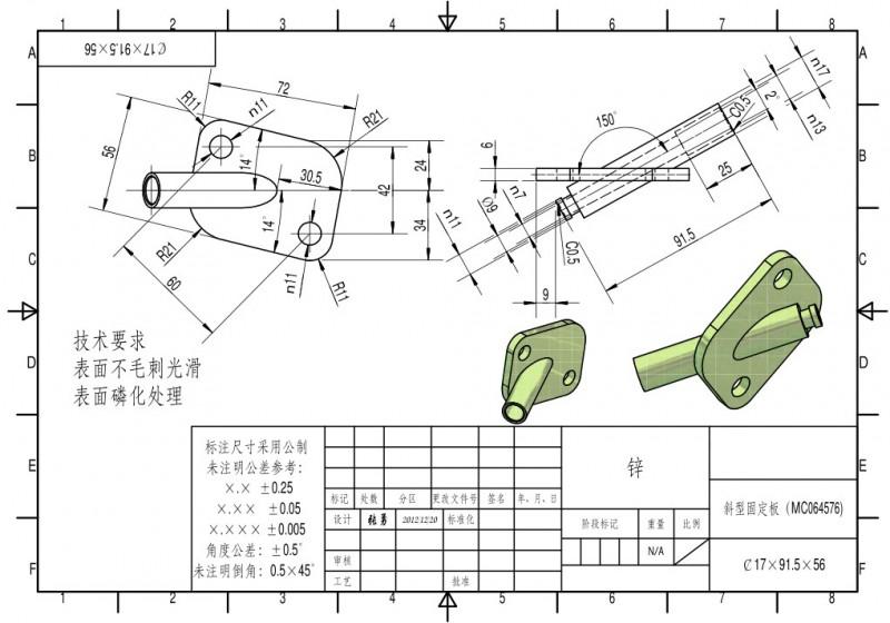 采購如圖所示鋅合金壓鑄件 尺寸具體見圖 要求表面需光滑,不可有毛刺,表面磷化處理