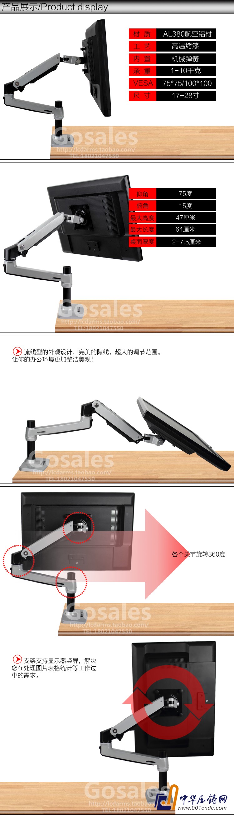 采購如圖所示壓鑄氣壓鋁合金顯示器支架 數(shù)量: