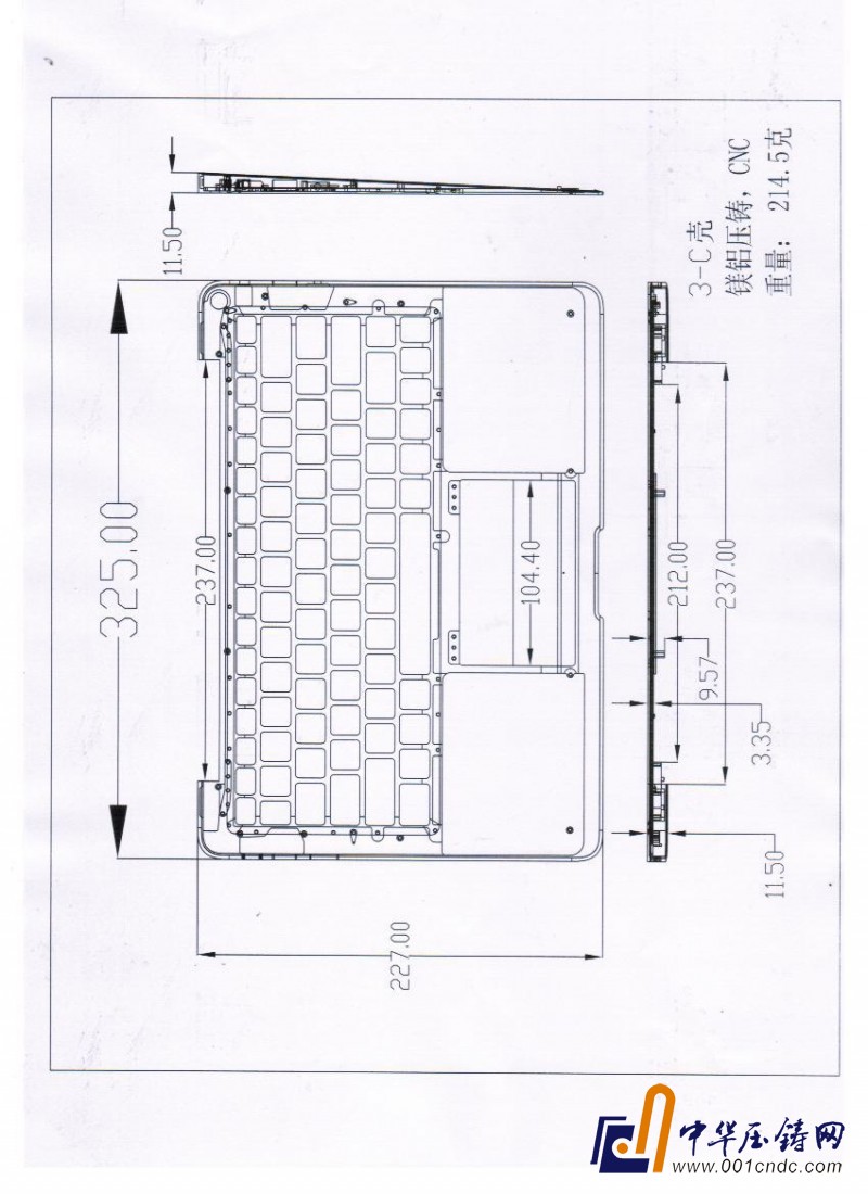 采購如圖所示鋁鎂合金壓鑄件(筆記本配件)數量: