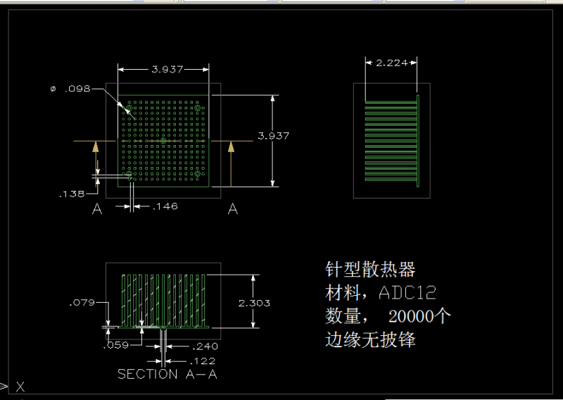 采購如圖所示鋁合金壓鑄件 (針型散熱器) 數量:20000件