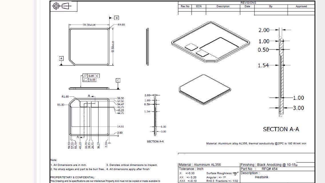 采購如圖所示鋁合金壓鑄件(散熱片)數量: