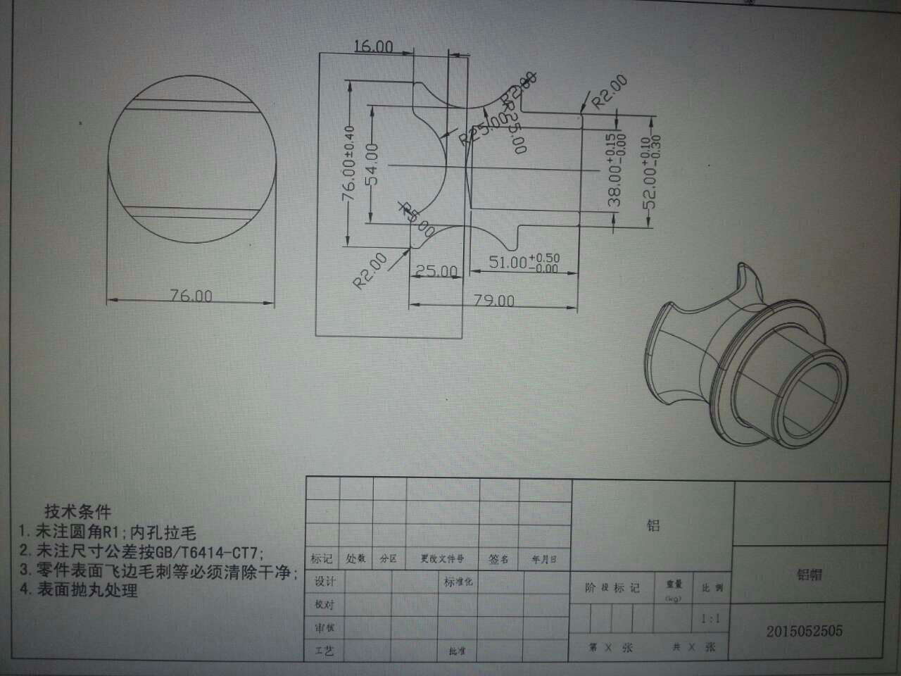 采購如圖所示鋁合金壓鑄件(鋁帽)數量: