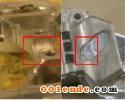 1.模具剛性不夠,在金屬液填充過程中,模板產(chǎn)生抖動 2.壓室沖頭與壓室配合不好,在壓射中前進速度不平穩(wěn) 3.澆注系統(tǒng)設(shè)計不當(dāng)