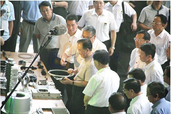 尤其是最近一年,兩名中央政治局以上領導人的到來,讓這家企業風頭更是一時無二。2011年7月14日,省委書記汪洋來順德調研轉型升級和加強社會建設,參觀了伊之密的裝配車間,并對其近幾年的高速發展和創新模式給予了肯定。今年8月24日,溫家寶總理前來視察,在車間和一線工人進行了深入交流,關心訂單情況,并勉勵公司在世界裝備制造業的激烈競爭中要以智取勝,拿出自己的專利和先進的技術,“目標要定位在領先!”