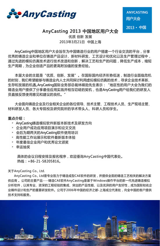核心提示:AnyCasting 2013 中國地區用戶大會明年3月召開