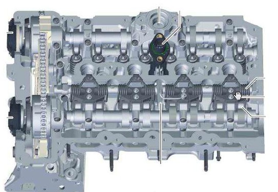 再看一下油底殼。油底殼是由壓鑄鋁合金制成。針對(duì)于xDrive車輛,其帶有驅(qū)動(dòng)軸開口和主減速器固定點(diǎn)。帶有平衡軸的機(jī)油泵覆蓋整個(gè)油底殼范圍。因此可防止機(jī)油飛濺到曲軸上。通過機(jī)油回流通道回流的機(jī)油被直接輸送至油底殼內(nèi),因此不會(huì)接觸到曲軸。
