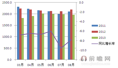 2011-2013年3-8月產量變化趨勢圖