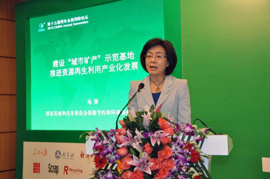 國家發改委資源與環境司副司長馬榮做了《建設“城市礦產”示范基地 推進資源再生利用產業化發展》的專題演講。