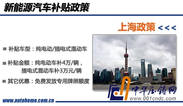 2012年,上海市出臺了《上海市鼓勵私人購買和使用新能源汽車試點實施暫行辦法》,其中插電式混合動力乘用車將獲得每輛3萬元的補助,純電動乘用車補助力度為每輛4萬元,并且還可以免費得到專用牌照額度(目前,上海汽車牌照額度拍賣價格在7萬元-10萬元左右)。當然,享受補貼的車型也要進入上海市經信委發布的《上海私人購買新能源汽車試點車型信息表》。