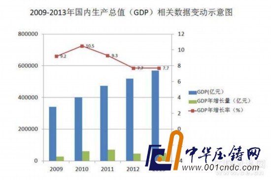 那么事實(shí)如何呢?中國經(jīng)濟(jì)持續(xù)三十多年的超高速增長世界罕有。然而,任何國家也不可能一直行駛在“快車道”上,這也不符合經(jīng)濟(jì)發(fā)展的客觀規(guī)律。隨著時(shí)間的推移,中國的經(jīng)濟(jì)總量越來越大,如今每增長一個(gè)百分點(diǎn),其GDP絕對(duì)數(shù)與往昔不可同日而語。比如2013年GDP增長7.7%,看似明顯低于2009年9.2%的增速,但實(shí)際上,2013年GDP增長的絕對(duì)數(shù)約5萬億,而2009年增長的絕對(duì)數(shù)只有約2.7萬億,就經(jīng)濟(jì)增長量而言,2013年要大大超過2009年。