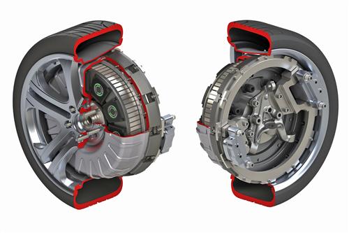 而若采用輪轂電機(jī)的布局,則可以省去動(dòng)力總成中的大部分組件,例如發(fā)動(dòng)機(jī)與變速箱。輪轂電機(jī)直接安裝在車(chē)輪內(nèi)部。米其林和汽車(chē)公司Venturi在2010年合作推出了一款Venturi Volage概念車(chē),其中就采用了輪轂電機(jī)方案,米其林將其稱(chēng)為主動(dòng)輪系統(tǒng)(Active Wheel System)。該系統(tǒng)的強(qiáng)大之處在于,車(chē)輪內(nèi)不僅有電機(jī),甚至連電子制動(dòng)系統(tǒng)、主動(dòng)懸架系統(tǒng)也都包含在內(nèi)。