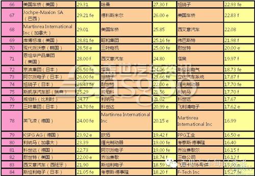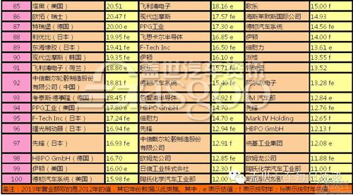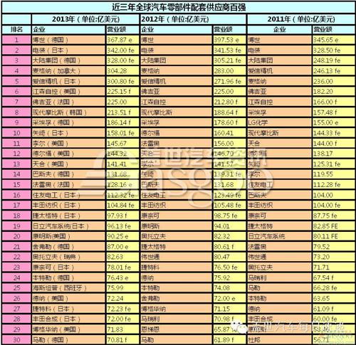 下表為近三年全球汽車零部件配套供應(yīng)商百?gòu)?qiáng)名單: