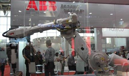 他們高大帥氣,他們嫻熟穩(wěn)重,他們精準(zhǔn)高效,他們環(huán)保節(jié)能……他們就是本屆展會(huì)的亮點(diǎn)之一——智能化機(jī)器人。展會(huì)上,10余家國(guó)內(nèi)外知名機(jī)器人生產(chǎn)企業(yè)集中展示了用于噴涂、造型、制芯、澆注、清理、搬運(yùn)等工序的數(shù)十種機(jī)器人產(chǎn)品。上海ABB工程有限公司作為其中參展商之一,在此次展會(huì)中主要展示了ABB鑄鐵件打磨應(yīng)用: