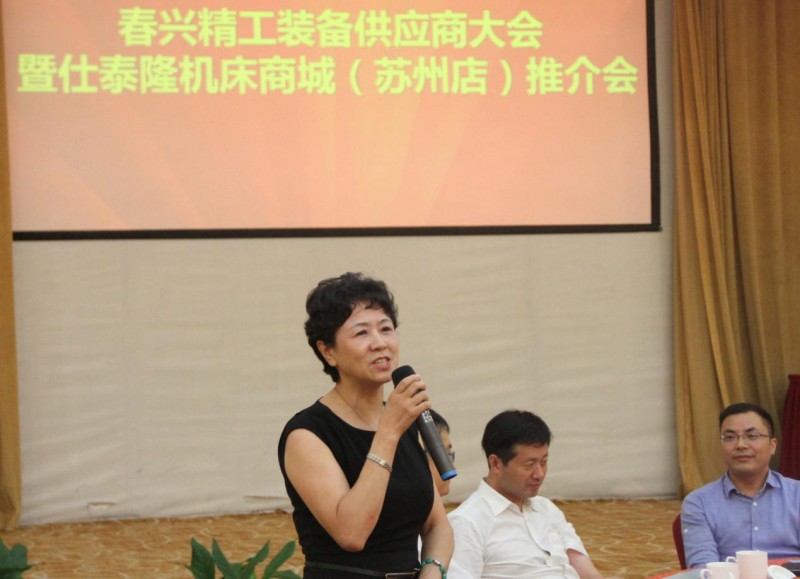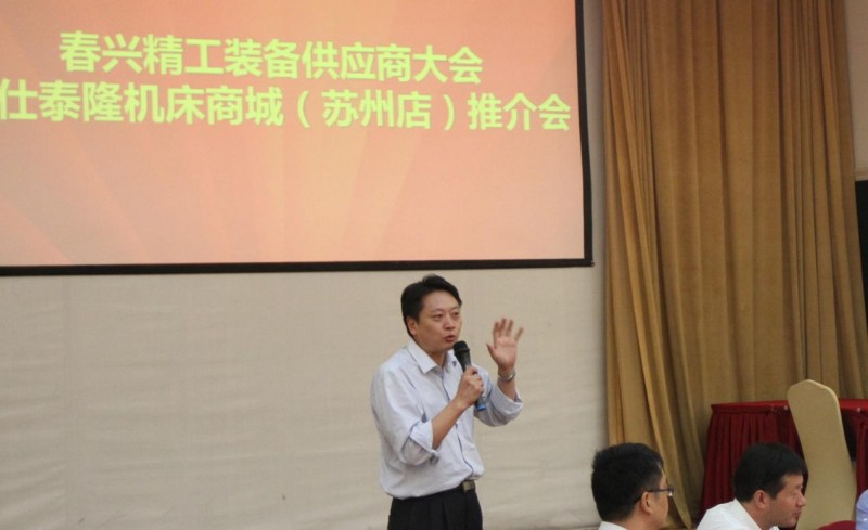 最后仕泰隆集團董事長侍賢君為“仕泰隆機床商城”作了隆重推介,他指出“從我國機床和配件產業未來的發展前景來看,未來4年的銷售額預計可達到1200億人民幣,而當今機床行業無論是銷售還是與采購商的溝通都存在諸多的問題,仕泰隆機床商城很好的解決了這些問題”。