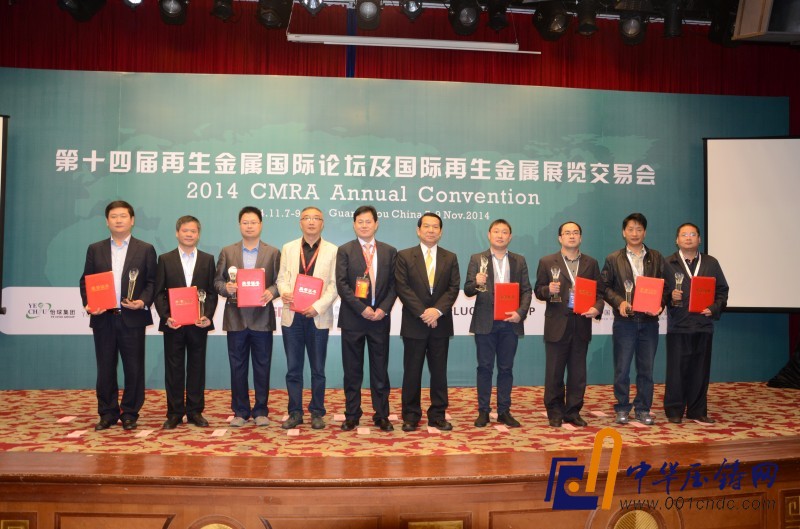 11月8日上午,在第十四屆再生金屬國際論壇開幕式上,中國首屆“再生有色金屬綜合利用示范工程”評選揭曉并舉行頒獎儀式。中國有色金屬工業協會再生金屬分會副會長黃耀濱、李富元為當選企業頒發榮譽證書和獎杯。中國有色金屬工業協會再生金屬分會副會長兼秘書長王吉位主持頒獎儀式。