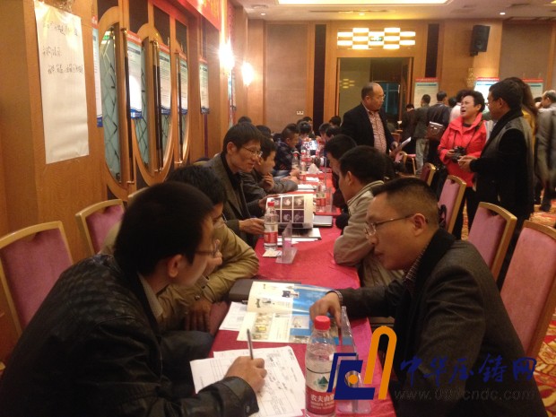 24日下午13:30采配會準時開始,采購商按照現場的位置安排,座滿了整個會場,有些攜實樣,有些攜帶項目圖檔,與前來的供應商深入洽談。下午14:00采配會現場熱鬧非凡,每一個采購商面前都有好幾個供應商等待洽談,據易模網統計最高時段,采配會現場有200多人。這些采購項目極大地吸引了現場的供應商,不少企業看到對口的采購項目一個都沒落下,逐家的洽談下去直到采配會結束。