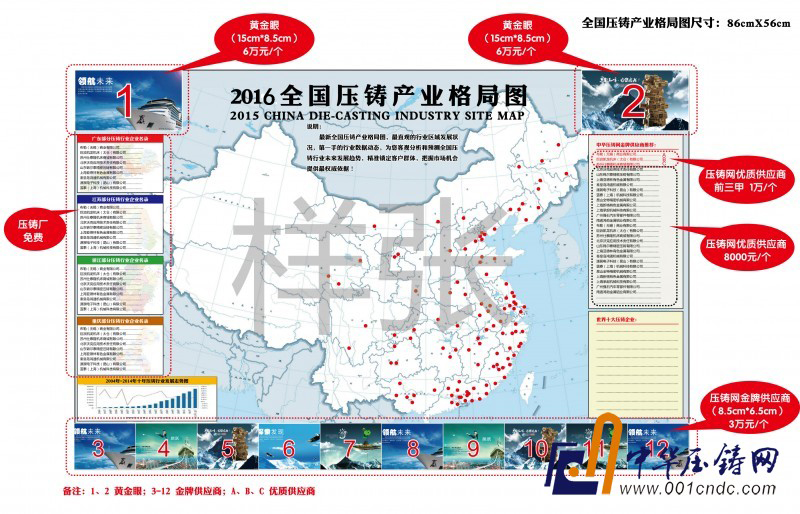 為了讓各壓鑄及壓鑄相關企業更直觀地了解行業區域發展狀況,第一時間抓住行業最新數據動態,全面把握全國壓鑄產業最新格局,從而對全國壓鑄行業未來的發展趨勢及投資風險做出客觀分析與預測,把握市場機會,做出正確的經營決策,中華壓鑄網特此重磅推出2016全國壓鑄產業格局圖,傾情回饋,商機無限!