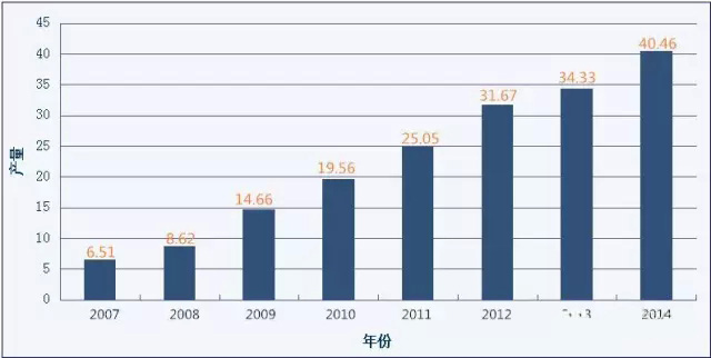 2007~2014年陜西原鎂產量變化