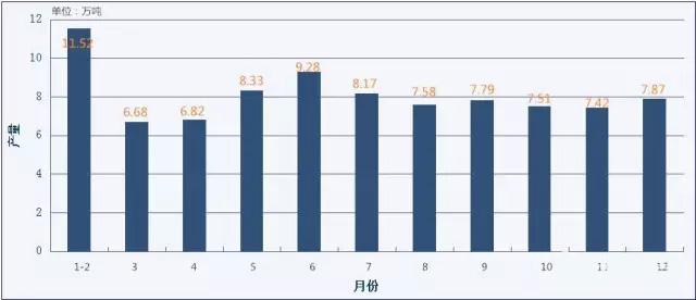 備注:因新年春節假期影響,1、2月份的產量合并統計處理