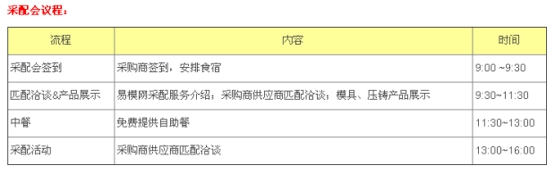 2015年易模網第一場采配會將于3月26日在寧波北侖模具壓鑄公共服務中心舉辦,本次采配會以服務模具及壓鑄件采購商為主,我們將邀請本地120家模具壓鑄廠與您面對面洽談。采配會前期我們將進行采購項目的供應商精確匹配,并把匹配方案在會前反饋給采供雙方。采配洽談會以采購商發布采購項目、設置洽談桌與供應商面對面洽談的形式展開。如果你想快速建立跟這些模具壓鑄廠的業務聯系就請報名參加。