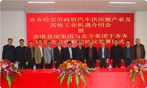 本次合作協議由嘉瑞集團董事局主席李遠發先生和齊齊哈爾北方發展集團董事長曲誠遠代表雙方簽字。齊齊哈爾市市長孫喆先生、北方特種合金高科技有限公司總經理李福剛等出席了簽約儀式。