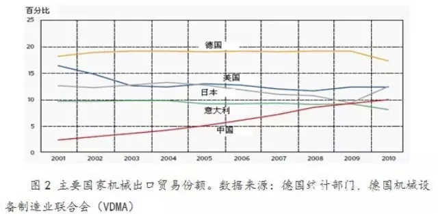 受資源稟賦和市場(chǎng)狹小的制約,德國(guó)制造業(yè)從一開(kāi)始就主要依存海外市場(chǎng),出口成為增長(zhǎng)的首要引擎。以出口為導(dǎo)向,是德國(guó)制造業(yè)的一個(gè)典型特征。德國(guó)的機(jī)械設(shè)備制造業(yè)出口市場(chǎng)廣闊,有四分之三的機(jī)械設(shè)備產(chǎn)品銷往國(guó)外。在機(jī)械設(shè)備制造業(yè)的32個(gè)行業(yè)分支中,有17個(gè)行業(yè)分支德國(guó)居于全球市場(chǎng)首位,8個(gè)行業(yè)分支中位居世界第二位。