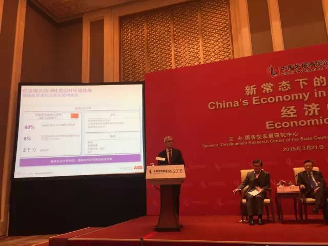 由國務院發展研究中心主辦、中國發展研究基金會承辦的“中國發展高層論壇2015”年會于3月21日~3月23日在北京釣魚臺國賓館舉行,本屆論壇的主題為“新常態下的中國經濟”。21日,ABB集團首席執行官史畢福博士發表了主題演講,通過全球視角和成功經驗積極探討了如何利用創新驅動新型城鎮化,為“新常態”下的中國城市可持續發展出謀劃策。