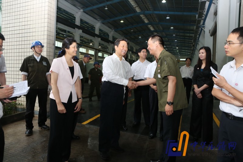李源潮副主席向余學(xué)聰董事長(zhǎng)了解車(chē)間生產(chǎn)情況