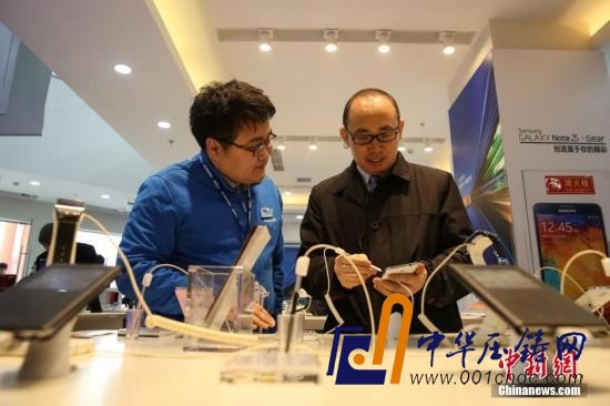 潘石屹現身北京前門大街體驗4G手機。中新社發 熊然 攝