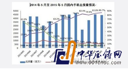 6月10日,據中國信息通信研究院官方微博消息,中國信息通訊研究院10日發布《2015年5月國內手機市場運行狀況》。該報告顯示,2015年1-5月,國內手機市場出貨量為1.99億部,同比增長11.6%。其中,4G手機出貨量1.62億部,同比增長532.6%。