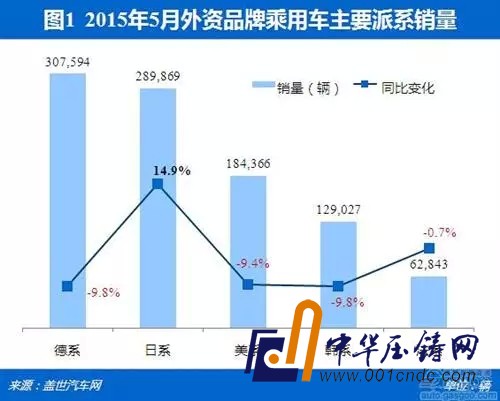 從外資主要派系來看,今年5月僅日系銷量實(shí)現(xiàn)正增長,其他派系銷量均出現(xiàn)不同幅度下跌。