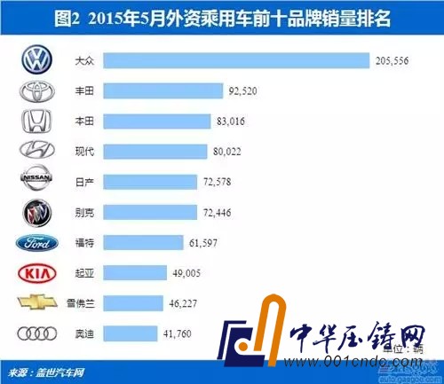 具體單一品牌來看,也可以看出外資品牌整體表現(xiàn)不佳的現(xiàn)狀。2015年5月在華外資乘用車銷量前十品牌依次是大眾、豐田、本田、現(xiàn)代、日產(chǎn)、別克、福特、起亞、雪佛蘭和奧迪。這十個(gè)品牌5月合計(jì)銷量達(dá)804,727輛,占外資品牌銷量81.9%。與去年同期相比,其中只有豐田和本田銷量同比上漲,其他品牌均出現(xiàn)下跌跡象。