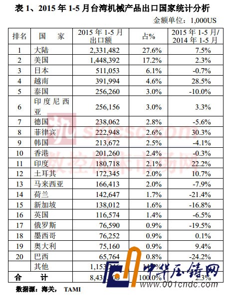2015年1-5月臺灣機(jī)械產(chǎn)品進(jìn)出口速報(bào)