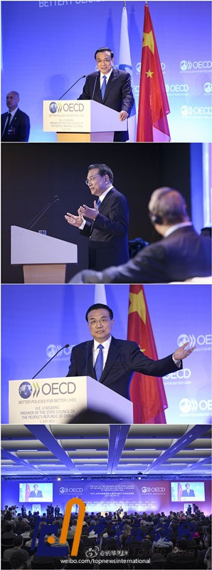 核心提示: 據新華社新華國際微博報道,李克強總理1日在經合組織發表演講說,中國經濟雖增速放緩,但有較充分的就業、持續增長的收入和不斷改