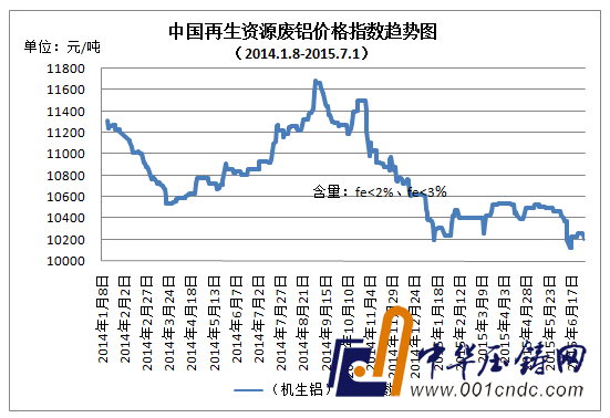 7月2日中國再生資源廢鋁價格指數10296元/噸,較昨日下跌92元/噸。今華東現貨鋁報12530-12570漲110。價格上漲市場氣氛樂觀,不過受行情不穩影響,持貨商趁機積極出貨,但下游謹慎。淡季需求減弱,廢鋁滯漲抗跌,各地區廢鋁價格整體變化不大,佛山機生鋁整體成交于10000-10200元/噸,破碎生鋁整體成交于10900-11100元/噸,長葛門窗料整體成交于10100-10300元/噸,機生鋁整體成交于10000-10200元/噸。