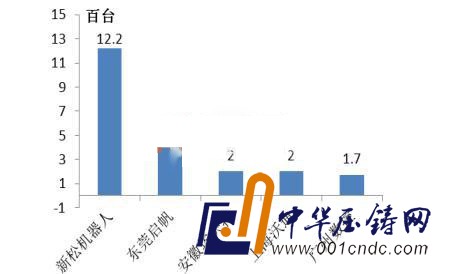 圖表:工業(yè)機器人本土企業(yè)銷量排行(單位:百臺)
