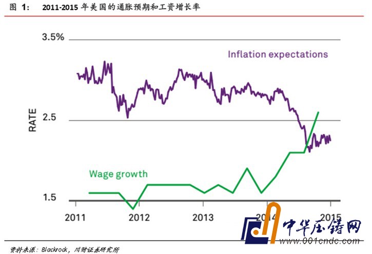 經濟走強的跡象以及金融市場泡沫再起為美聯儲加息鋪平了道路。三個關鍵指標:1)就業:官方數據顯示,截至2015年5月美國在此之前的12個月里創造的就業比之前13年多;2)通脹:美國通脹預期或在2015年年初由于油價崩盤而觸底(參看圖1);3)工資:美國工資在平了多年之后正在上漲。