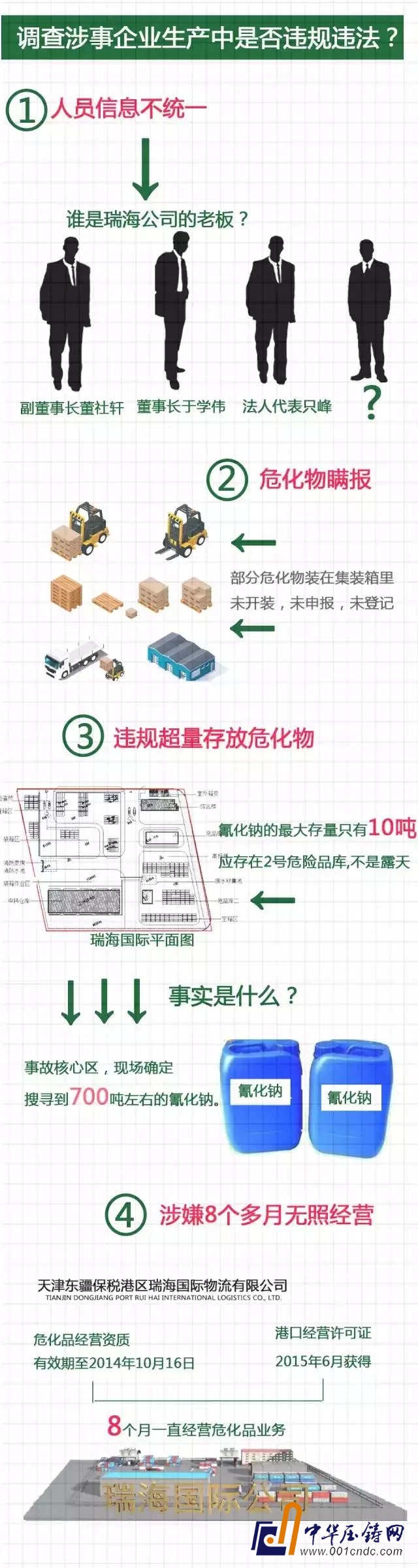 一場針對爆炸事故的全方位調查問責已經開啟!國務院將徹查事故原因,事故責任,并對事故責任人提出處理意見。瑞海公司作為涉事公司,核心管理層中已有10人被警方控制調查。官方已多次表示,對企業違法違規情況將進行全面調查,那么,瑞海公司可能涉嫌哪些方面違規呢?