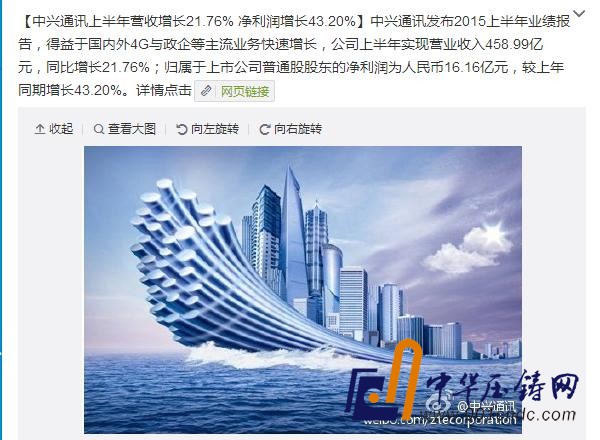 中興上半年營收458.99億人民幣,同比增長21.76%。其中運營商網絡營收285.14億元,手機終端營收99.59億元,電信軟件系統、服務及其它產品營收74.26億元。