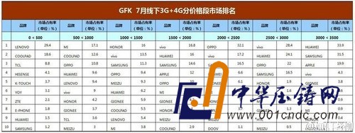 近日,德國市場研究公司GfK發布了2015年7月國內智能手機線下3G+4G分價格段的市場排名情況。數據中我們能夠看到,在國內3G+4G線下市場中,各品牌的市場份額發生了一定程度的變化。其中華為、OPPO的市場份額提升較為明顯。