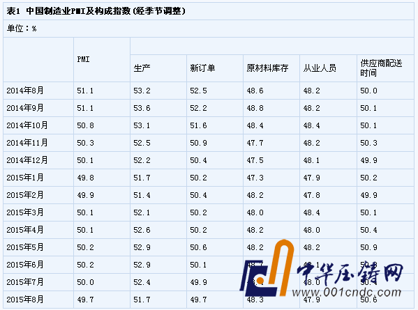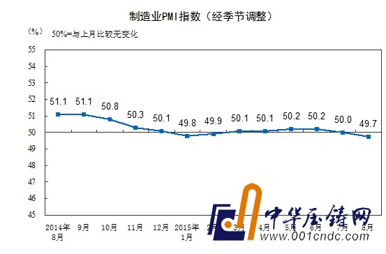 2015年8月份,中國制造業采購經理指數(PMI)為49.7%(東方財富網注:創2012年09月份以來新低),比上月回落0.3個百分點,降至臨界點下方。
