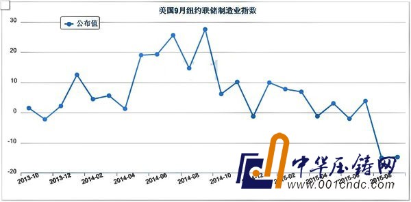 數(shù)據(jù)顯示,美國紐約聯(lián)儲9月紐約州制造業(yè)指數(shù)從為-14.7,與8月的-14.92變化不大,8月為自2009年4月以來最低。