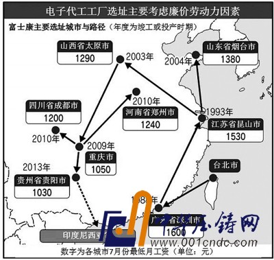 圖1 富士康的遷徙路徑 資料來源:日經(jīng)新聞(作者改譯)