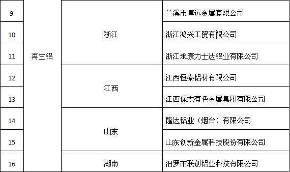 符合《鋁行業(yè)規(guī)范條件》企業(yè)名單(第三批)