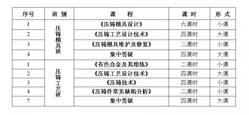 本次夏季培訓(xùn)班同時(shí)舉辦:“壓鑄模具班”、“壓鑄工藝班”共兩個(gè)班。這兩個(gè)專業(yè)班既具有明晰的專業(yè)分工和特點(diǎn),又相互銜接、影響,互為關(guān)聯(lián)。同時(shí)舉辦培訓(xùn)班,更方便學(xué)員的“選修”學(xué)習(xí)。