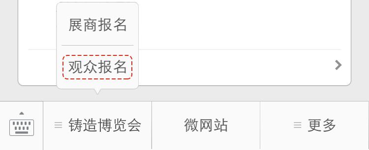 2.微信平臺(tái)工具欄點(diǎn)擊“鑄造博覽會(huì)”—“觀眾報(bào)名”