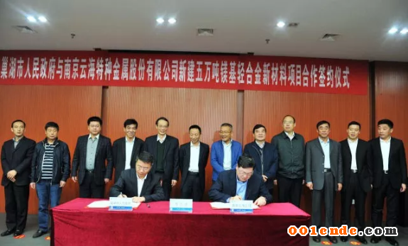 10月23日上午,巢湖市人民政府與南京云海特種金屬股份有限公司新建5萬噸鎂基輕合金材料項目合作簽約儀式舉行。