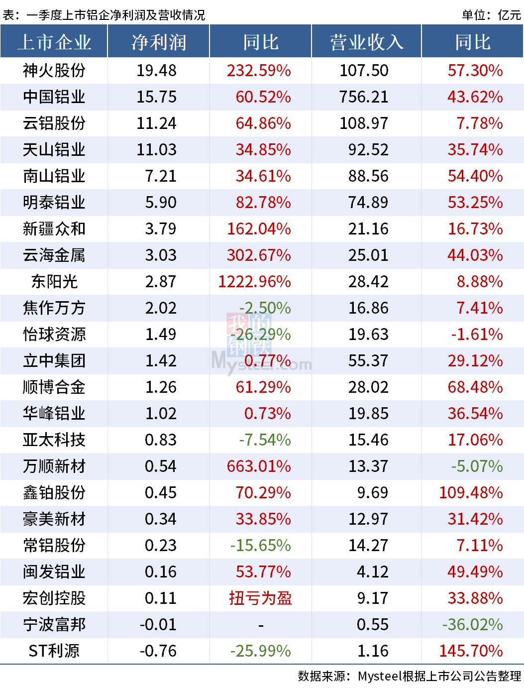 23家上市鋁企發布一季報,超七成凈利增長