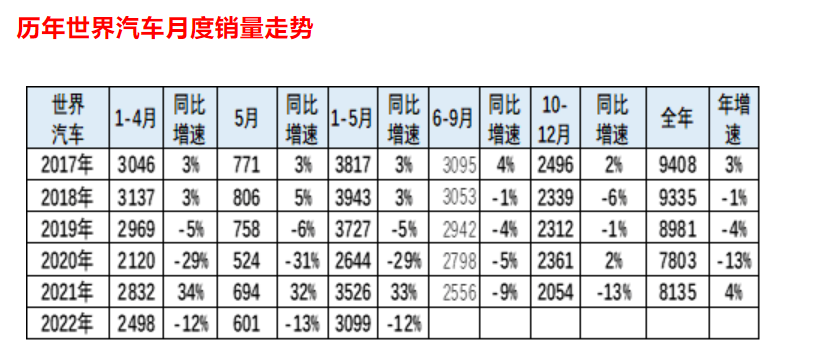 乘聯會秘書長崔東樹表示,中國汽車市場對世界汽車市場影響力極其巨大。2018年中國汽車占世界30%,2019年下降到29%,但仍具有絕對優勢,但2020年回升到32%。2021年中國份額保持32%。2022年1-5月中國份額保持在31%。北美洲和歐洲市場份額全面下降,這也是中國市場消費韌性較強的體現。