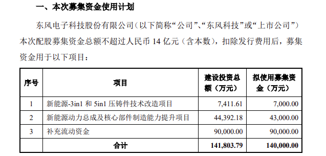 東風科技擬配股募資不超14億元 用于新能源-3in1和5in1壓鑄件技術改造項目等